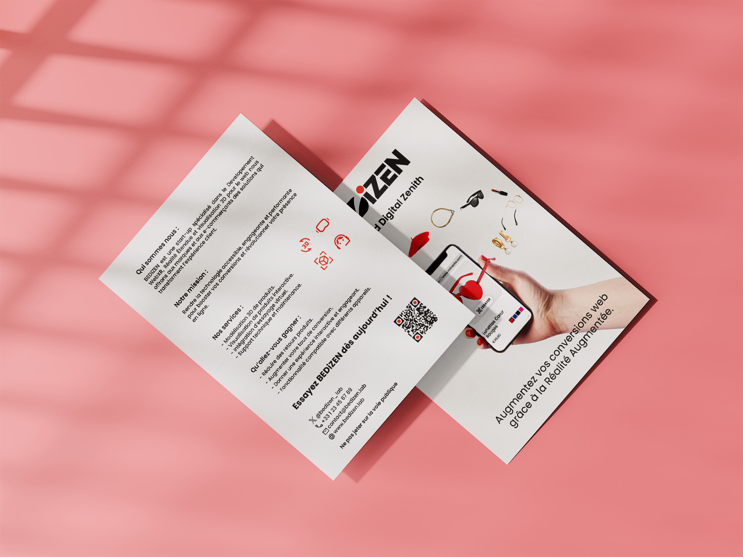 The challenge was to design a brand and a user interface for BEDiZEN, a conceptual startup whose mission is to make Web Augmented Reality (WebAR) accessible, affordable, and easy to implement for these smaller businesses.